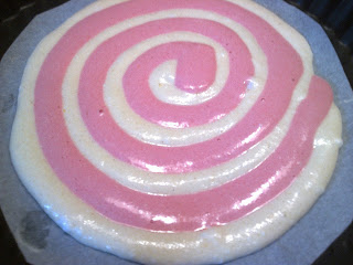 Séparer la pâte en deux. Dans une moitié, mélanger de l’arôme framboise ainsi que du colorant alimentaire rouge.