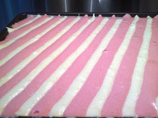Dresser en diagonale des lignes de pâte en alternant les couleurs. Faire également un fond.