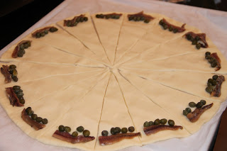 – garnitures de votre choix, ici anchois/câpres ou chèvre/raisin