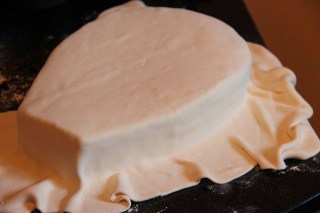 Finir de travailler la pâte sur un plan de travail toujours fariné de sucre glace. Vous pouvez teinter la pâte avec du colorant. Attention, si vous utilisez du colorant liquide (ce que je vous conseille car il pénétrera mieux la pâte), vous devrez rajouter du sucre glace. La bonne consistance, c’est une pâte très souple mais non collante. L’étaler sur votre plan de travail saupoudré de sucre glace, mais aussi votre rouleau à pâtisserie.