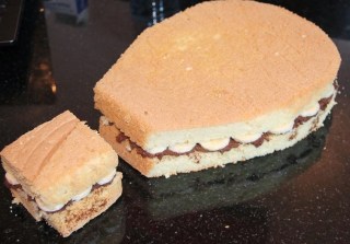 Couper votre gâteau en deux. Etaler sur votre génoise la mousse au chocolat, et répartir ensuite dessus les rondelles de banane. Couvrir avec la deuxième partie de gâteau.
