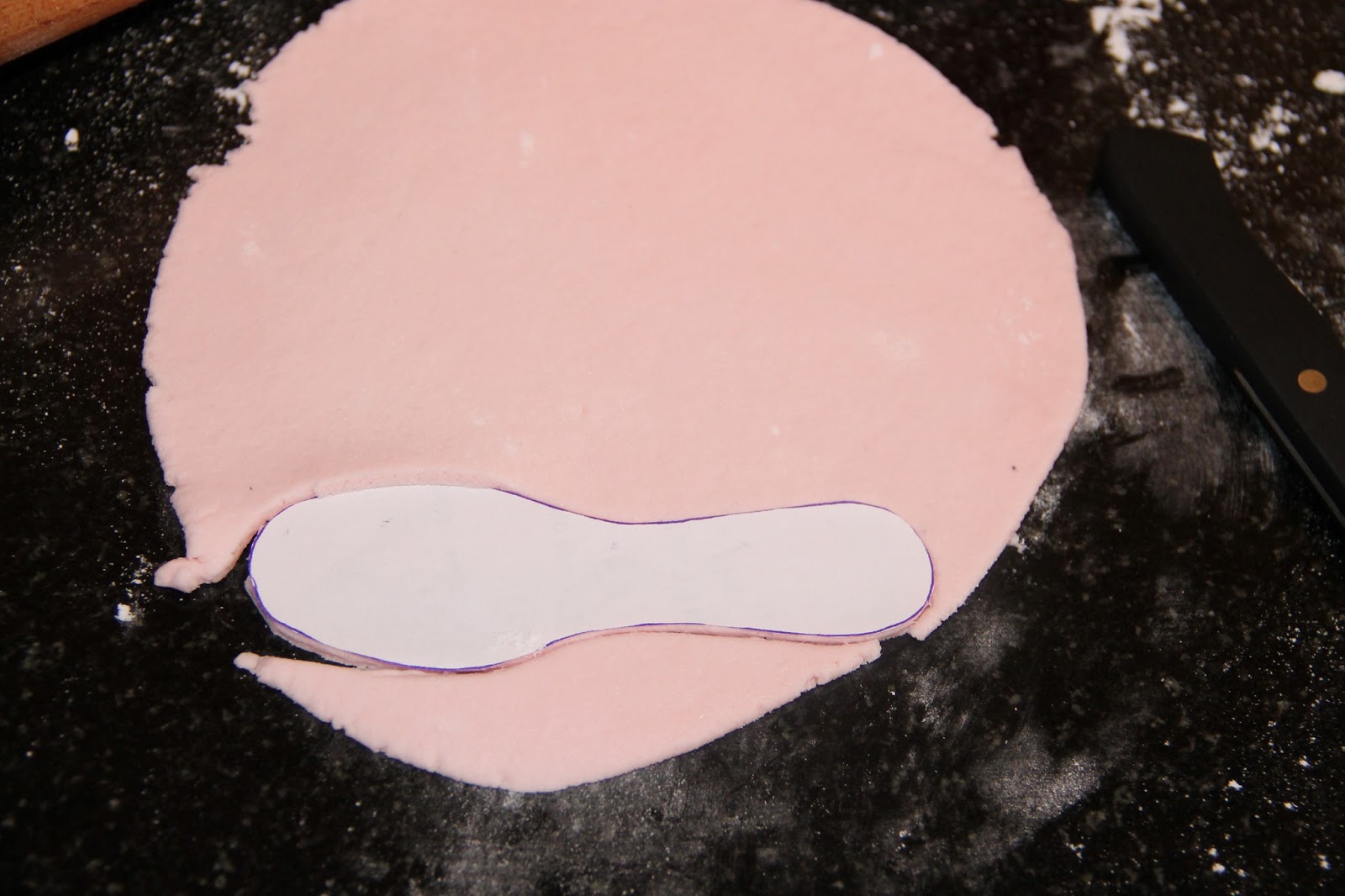 Pour les roses, étaler la pâte à sucre sur une épaisseur de 3 min environ et découper des ronds à l’emporte pièce.