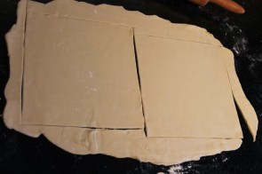 Sur un plan de travail fariné, découper trois pâtes de formes identiques :