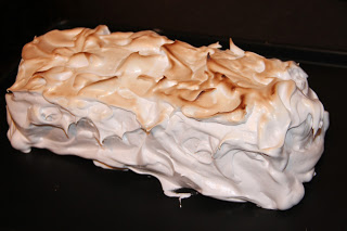 Recouvrir avec la meringue italienne. (Vous pouvez faire des motifs à l’aide des dents d »une fourchette).