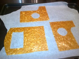 Commencer l’assemblage à l’aide de caramel chaud (attention les doigts ! 😉 )