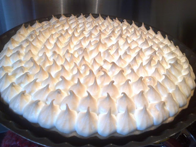 Garnir la tarte avec la meringue et placer à four chaud pendant 20 min.