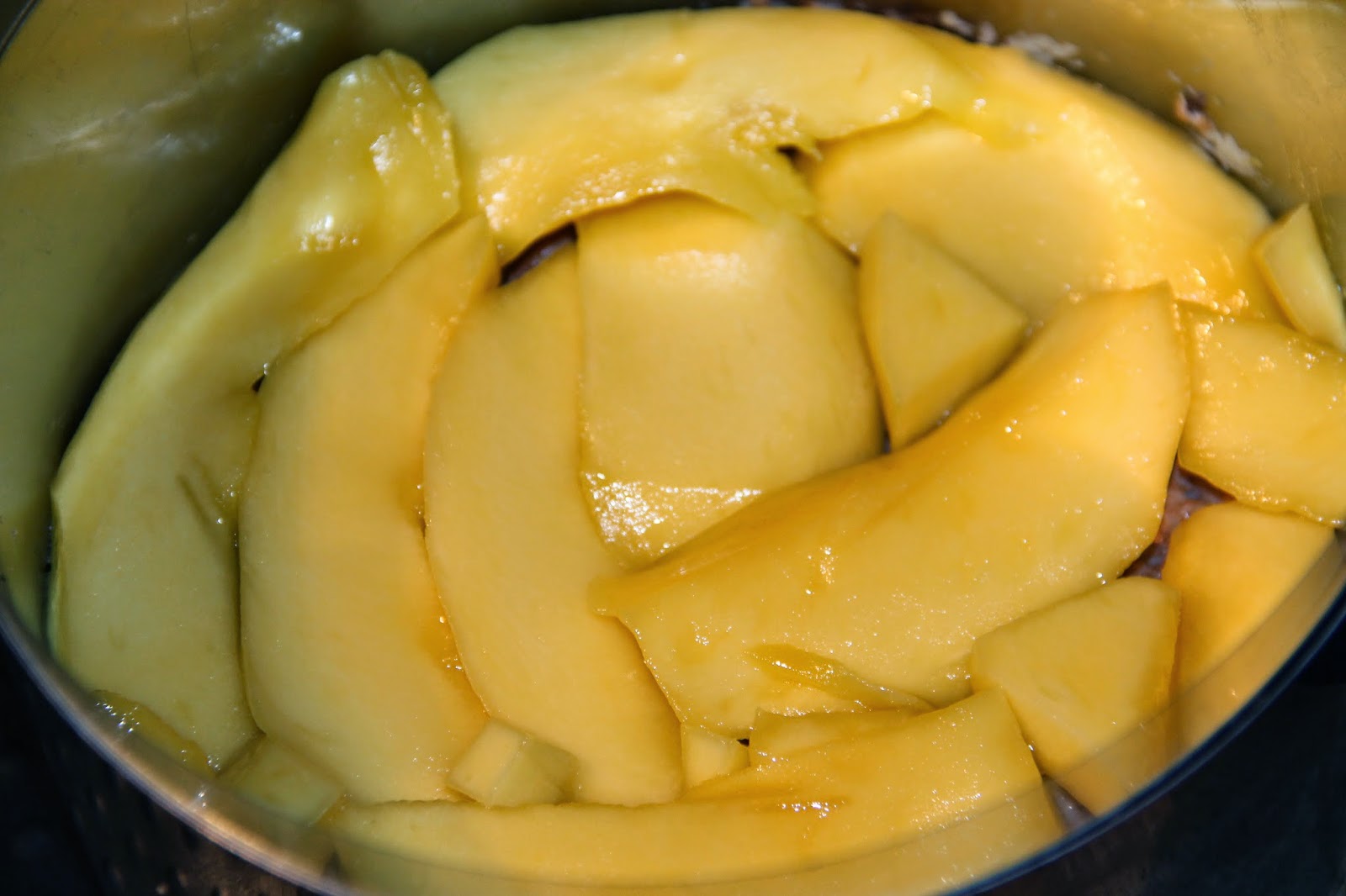 Disposer une couche de mangue fraîche sur le croquant blanc, et réserver de nouveau au réfrigérateur.