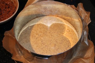 Remettre le disque de financier au fond du cercle et couvrir avec le croustillant praliné. Egaliser à la spatule. Réserver au réfrigérateur.