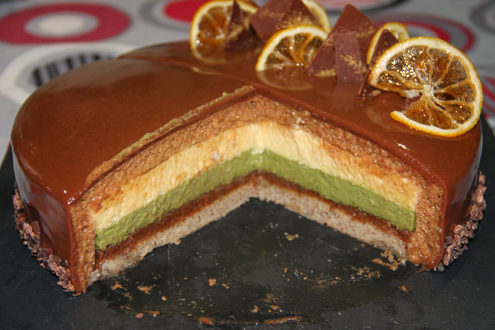 Agrandir le cercle de 2 cm de diamètre. Poser l’entremet glacé au centre, et verser la mousse de gianduja dessus.