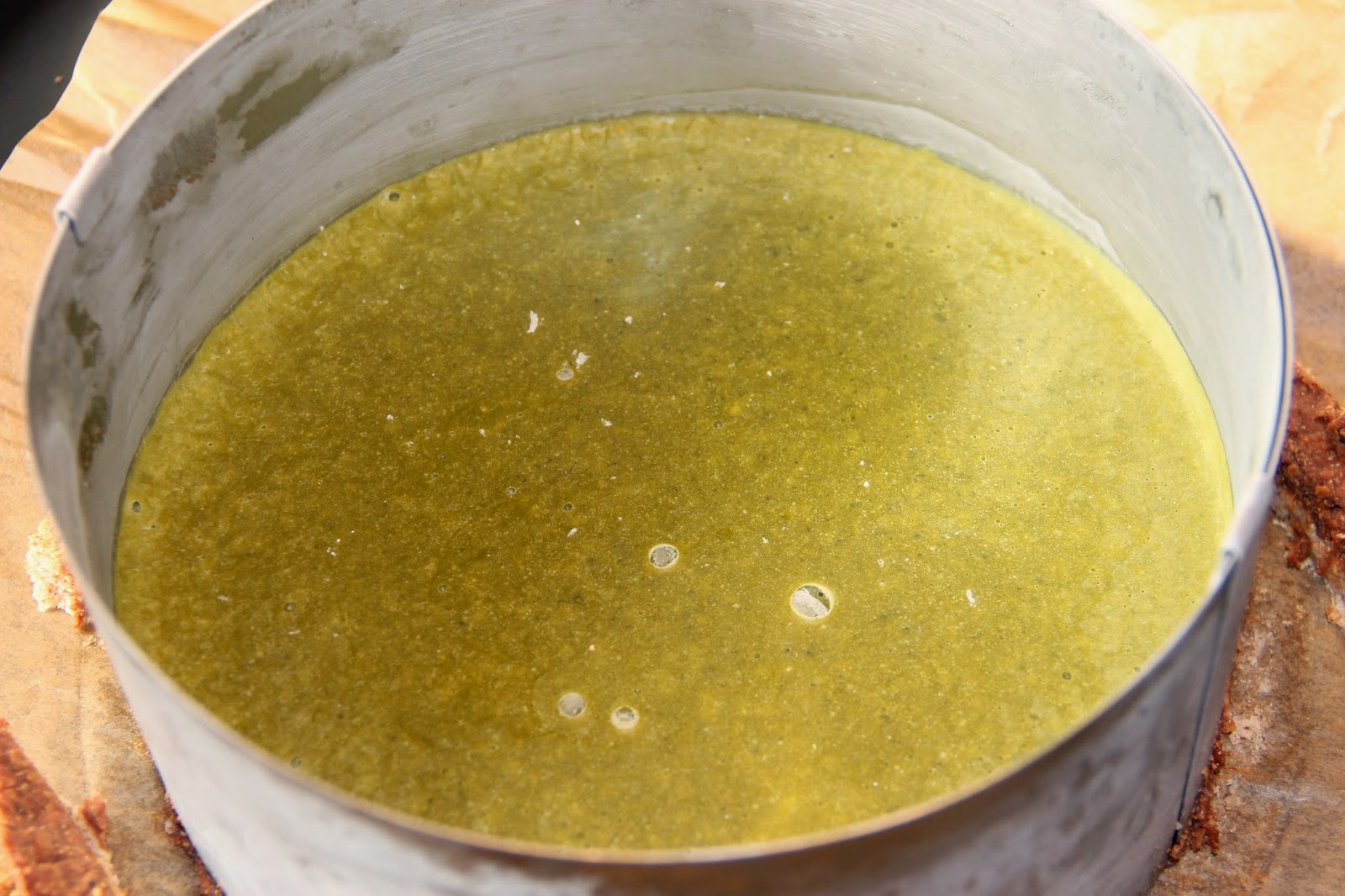 Verser sur le crémeux matcha, et remettre au congélateur.