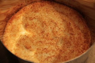 Mettre cette préparation dans un cercle de 18 cm de diamètre et saupoudrer avec le reste de la coco.