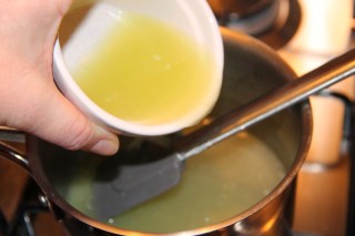 Faire chauffer le jus de citron jaune avec le sucre jusqu’à ce que ce dernier soit dissous.