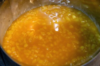 Réduire la mangue en purée et faire chauffer à feu doux.