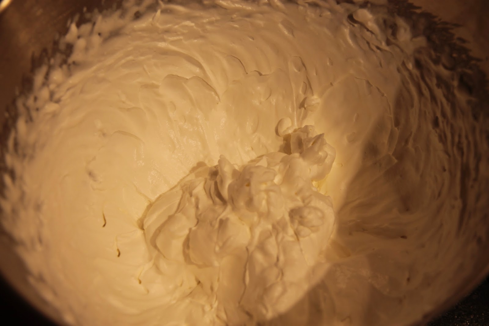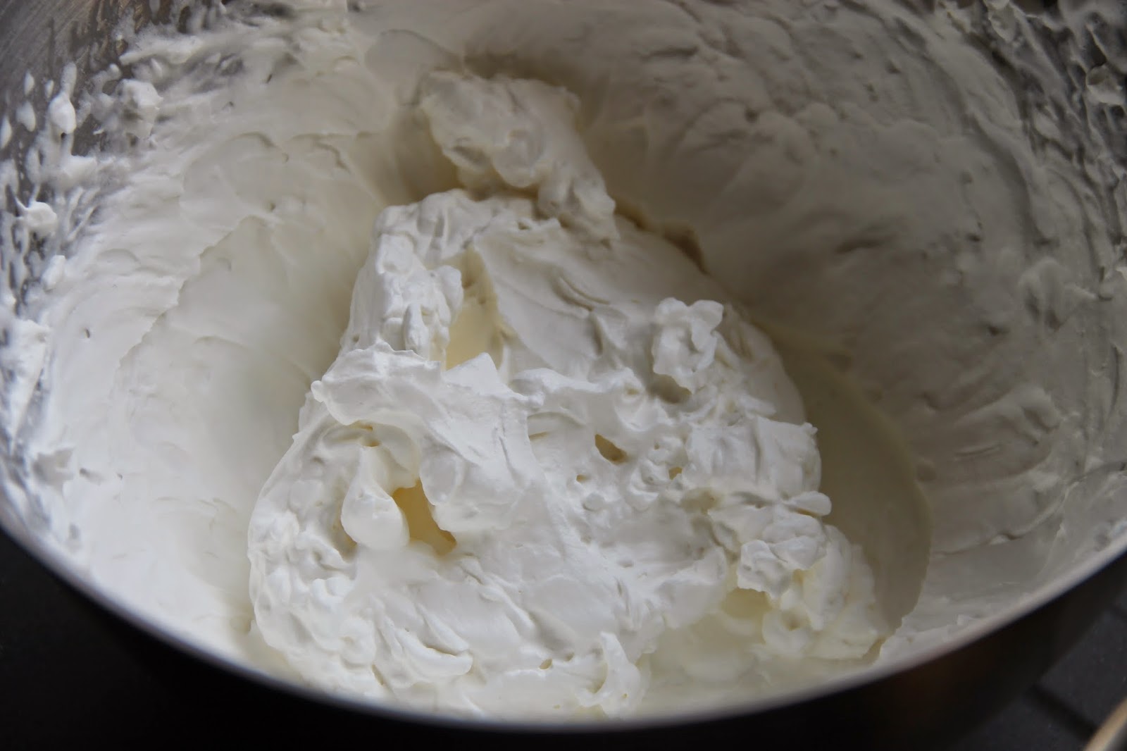 Fouetter la crème en chantilly et mélanger les deux préparations.