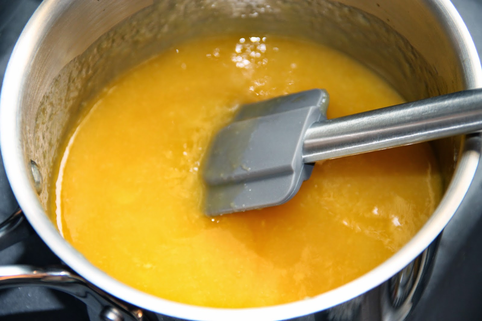 Faire chauffer le jus de citron jaune avec le sucre jusqu’à ce que ce dernier soit dissous.