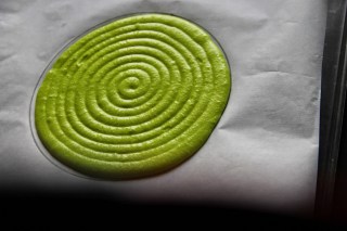 Sortir du four et déposer votre plaque de papier sulfurisé sur un plan de travail légèrement humide pendant 5 min. Le contraste thermique va décoller vos macarons sans effort !!!!