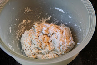 Pétrir délicatement :*** Saisir un bout de pâte sur le côté et le replier vers le centre. Tourner légèrement le saladier et recommencer avec un autre bout de pâte. Répéter ce geste encore huit fois.