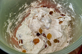 Incorporer ensuite les noix de pécan et les raisins sultana.