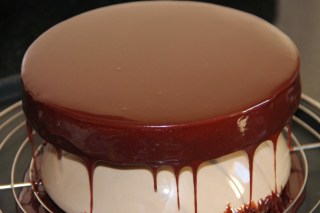 Quand le glaçage est à 35°C, le verser sur l’entremet encore congelé.