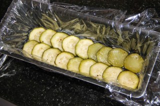Couvrir d’un film alimentaire et placer toute la nuit au réfrigérateur avec un poids sur la terrine pour évacuer l’eau rendue par les légumes.