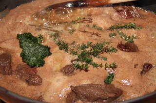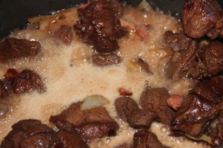 Faire dorer la viande sur toutes les faces, puis ajouter 2 CS de vergeoise.