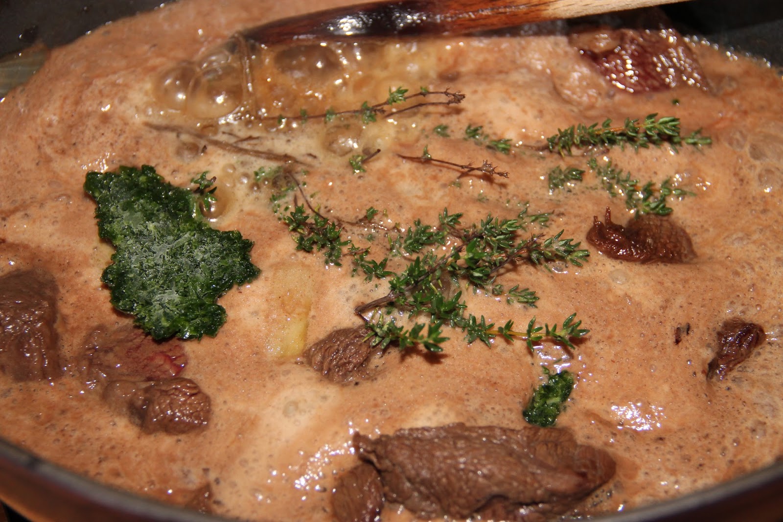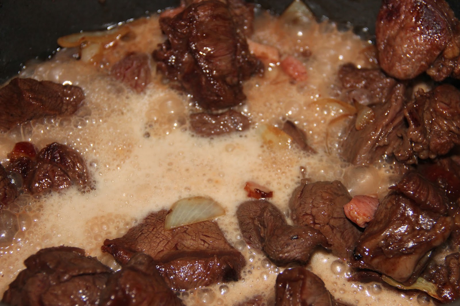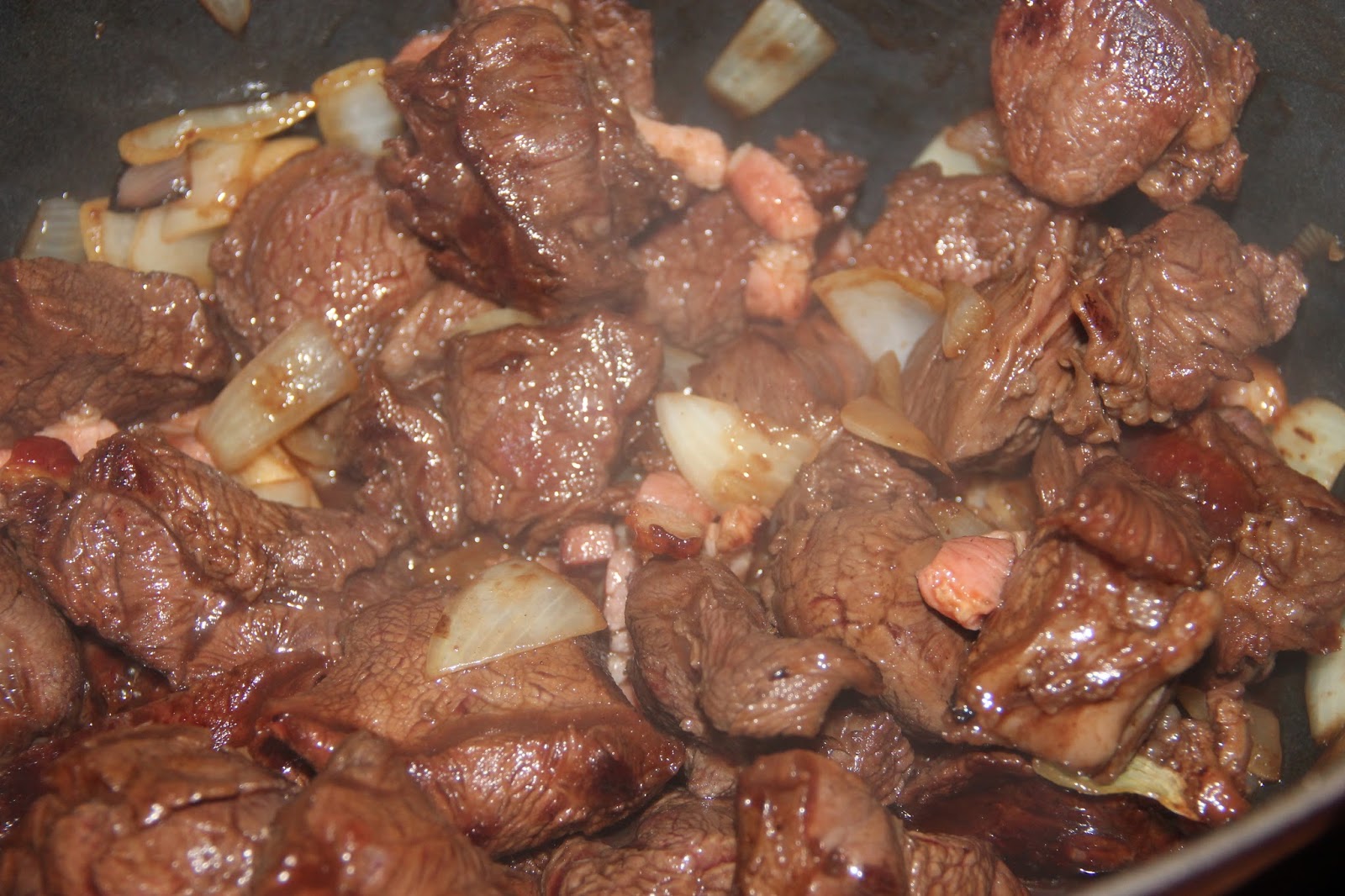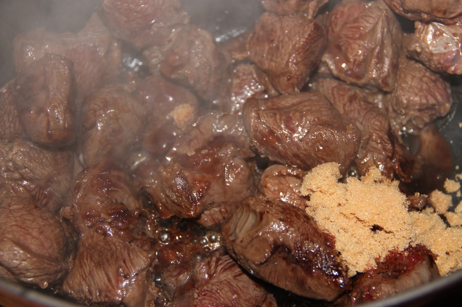 Faire dorer la viande sur toutes les faces, puis ajouter 2 CS de vergeoise.