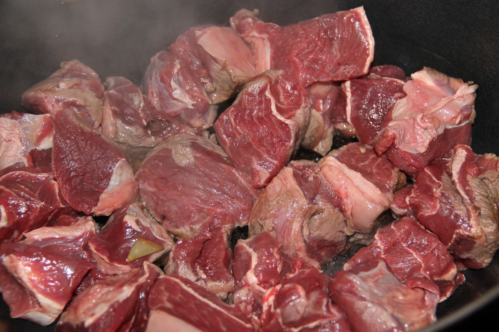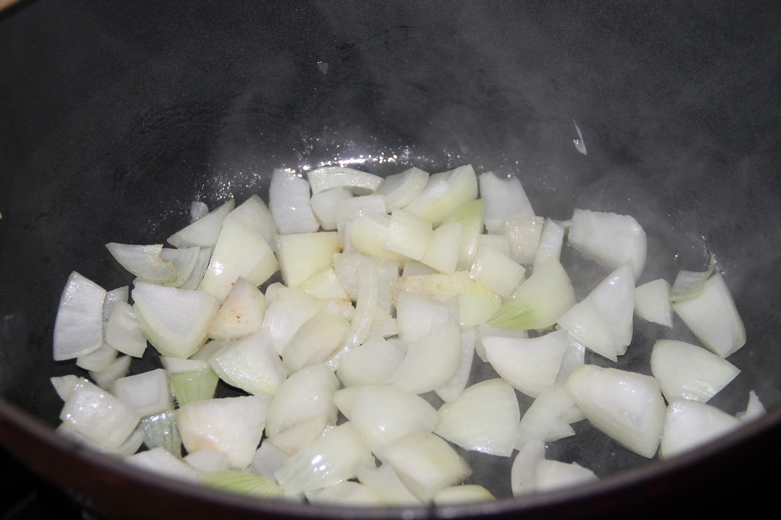 Couper la viande en morceaux de 2 à 3 cm, ainsi que les oignons en gros morceaux.