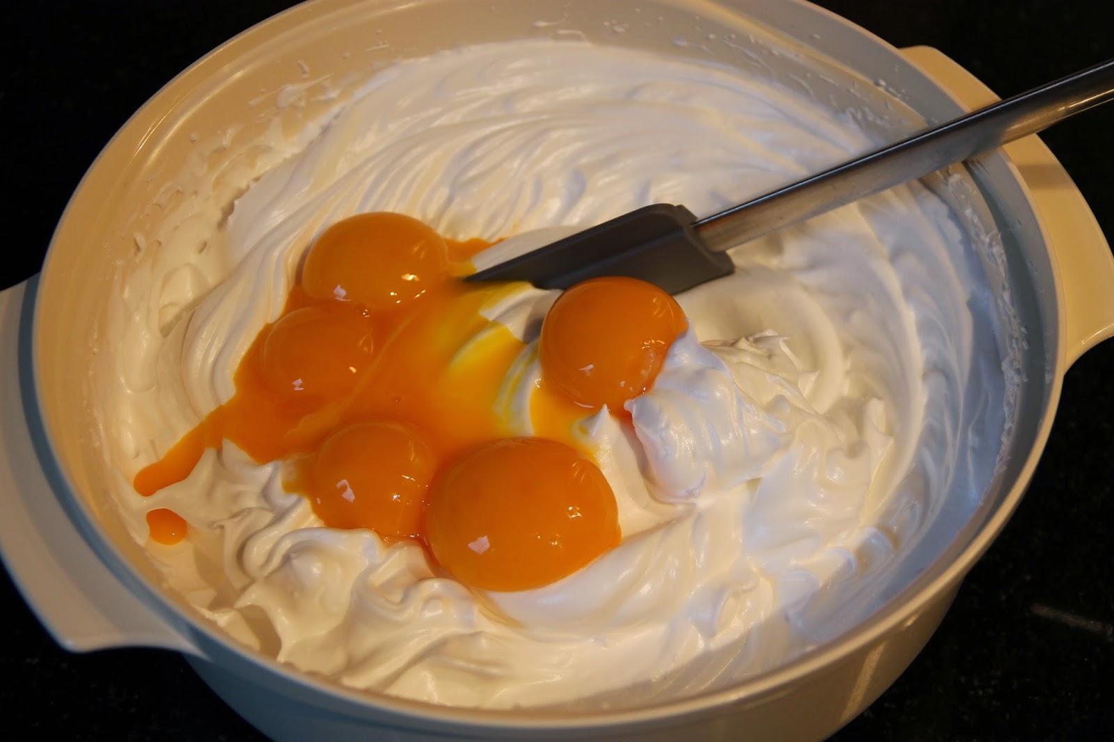Incorporer délicatement à l’aide d’une maryse les jaunes d’œufs à cette préparation.