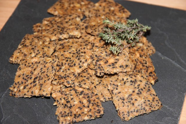 Recette issue du blog : http://pourquoi-pas-isa.blogspot.fr/2015/07/crackers-au-sesame-noir-thym-et-fleur.html