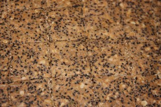 Sortir du four, retirer la feuille de papier sulfurisé, et découper les crackers à l’aide d’une spatule.