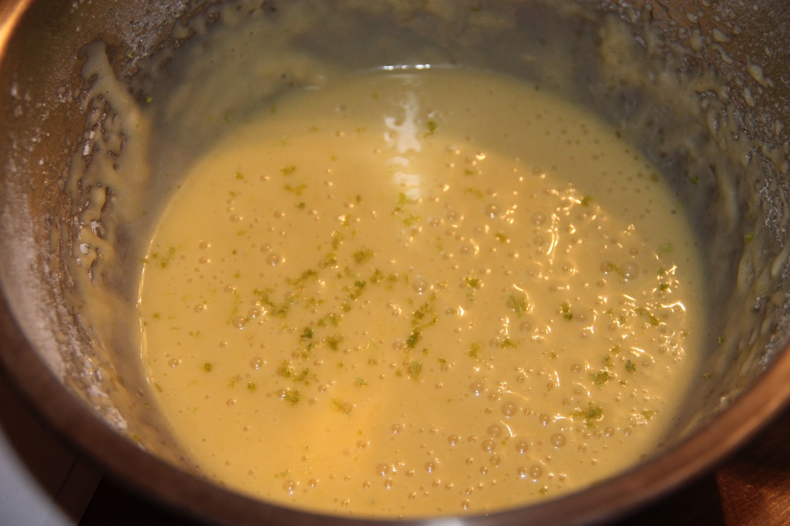Quand le fond de pâte sablée est cuit, le sortir du four et verser dessus le biscuit citron.