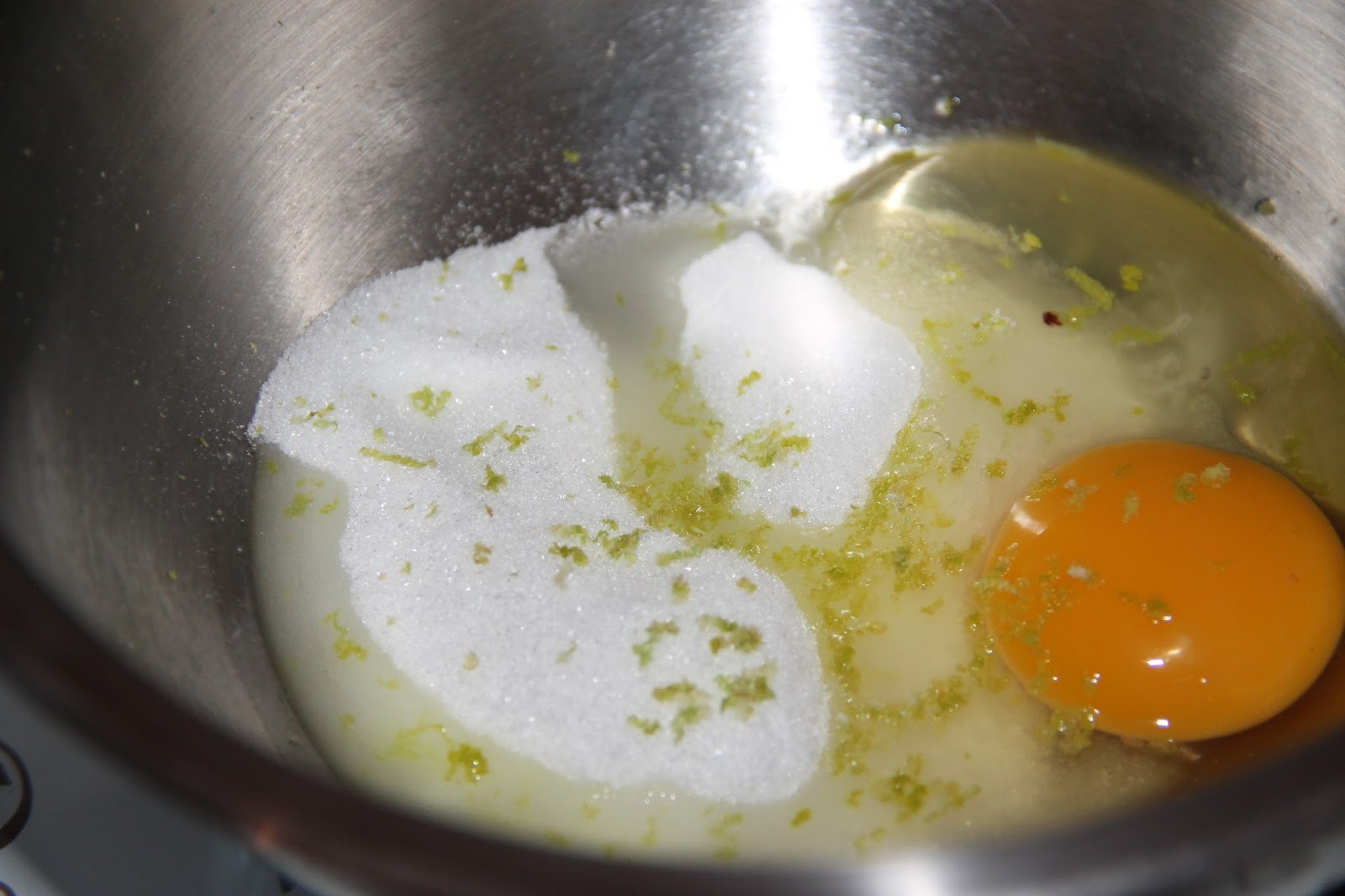 Dans un saladier, mettre l’oeuf avec le sucre et les zestes de citron.