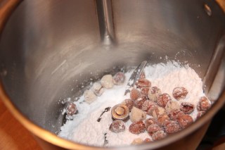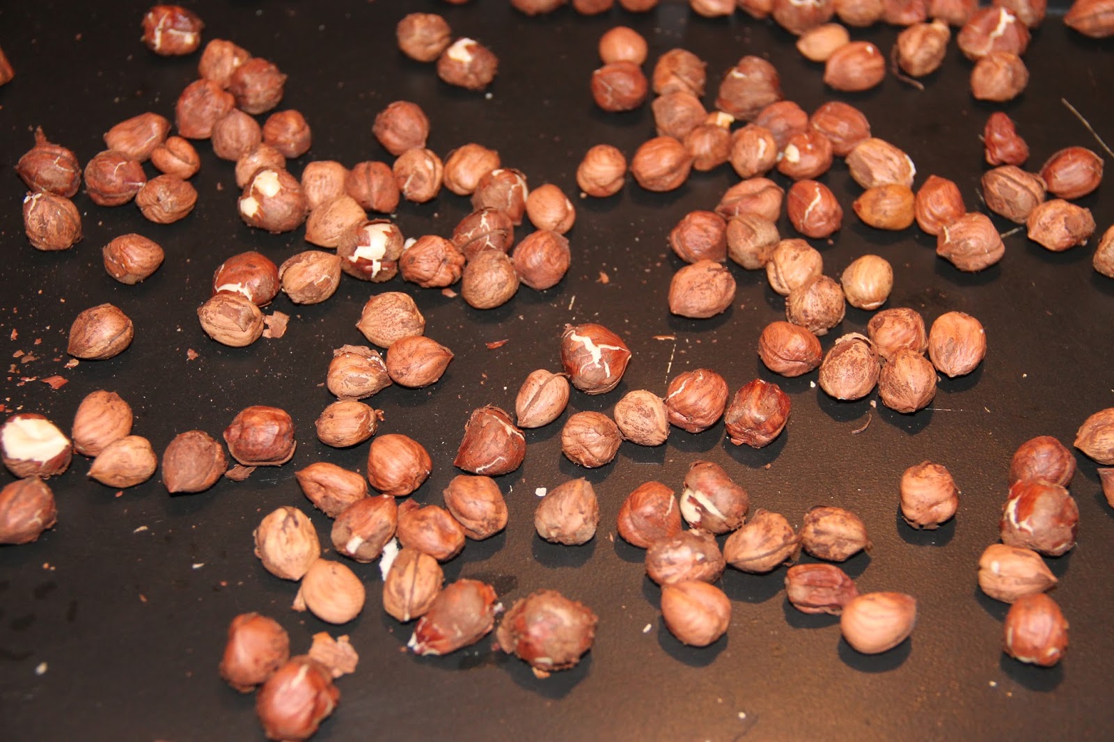Disposer les noisettes sur une plaque de cuisson et les torréfier au four pendant 40 minutes à 140 °C.