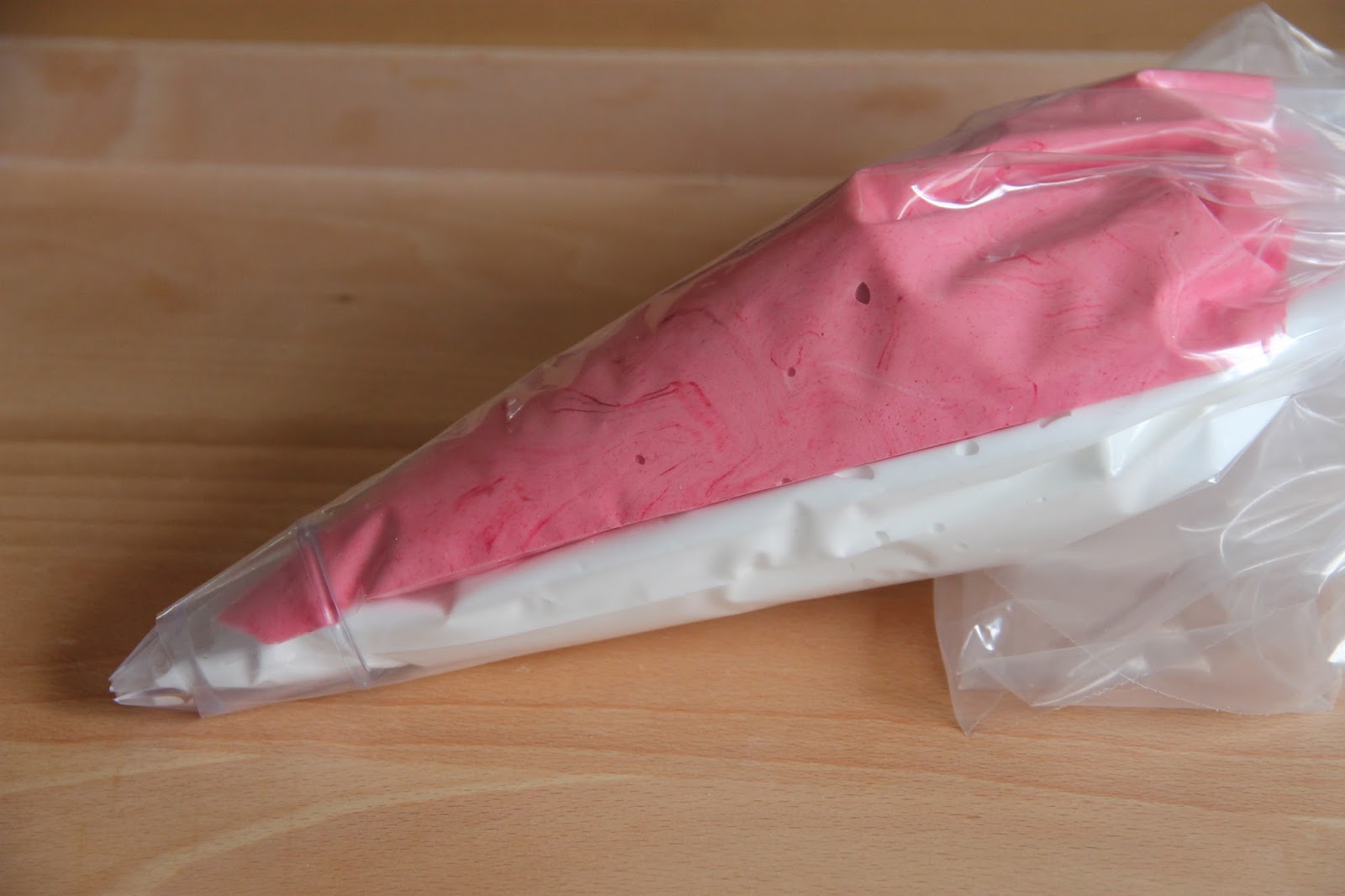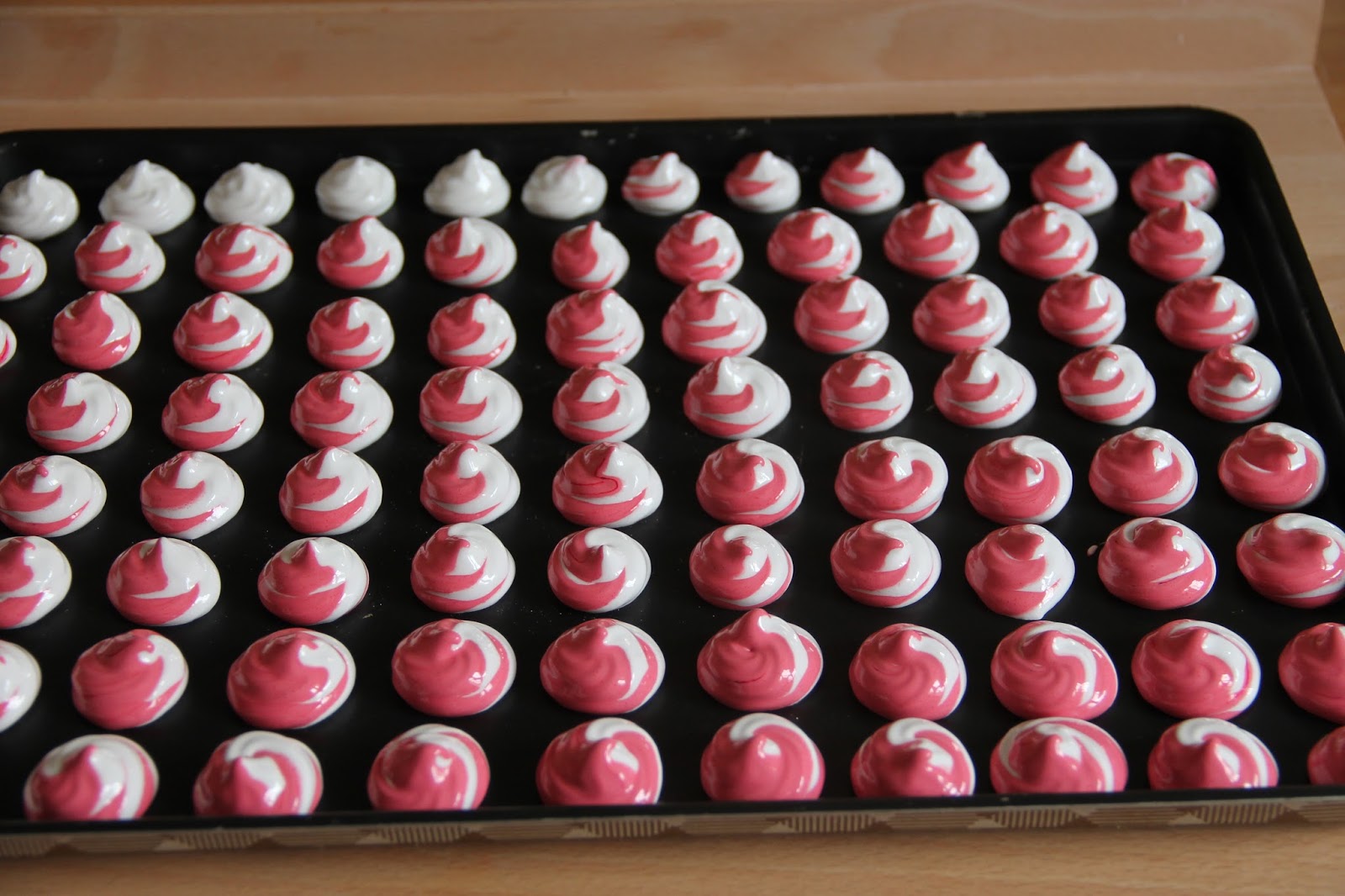 Séparer la meringue en deux et incorporer du colorant rose dans une moitié.