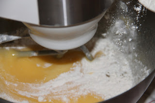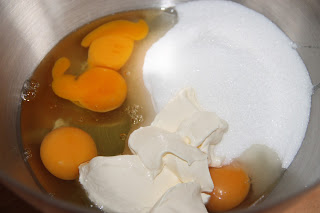 Mettre dans le bol du robot les oeufs, le sucre et la crème at mélanger à la feuille.