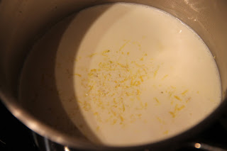 Faire chauffer le lait, la crème et le zeste de citron. Laisser infuser 10 min.