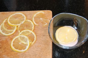 Tremper les tranches de citron des deux côtés dans le sucre.