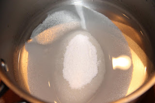 Dans une casserole, faire chauffer l’eau, le sucre et le glucose à 130°C.