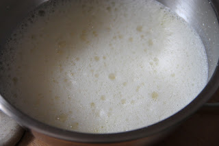 Remettre le tout dans la casserole et porter à ébullition sur feu doux sans cesser de remuer.