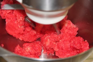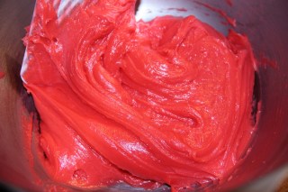 Mettre la pâte dans le bol du robot muni de fouets et incorporer le colorant alimentaire.