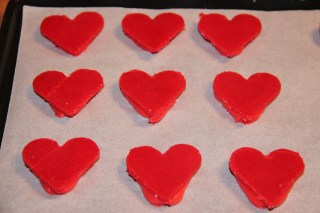À l’aide d’un emporte pièce, découper les coeurs dans le craquelin.