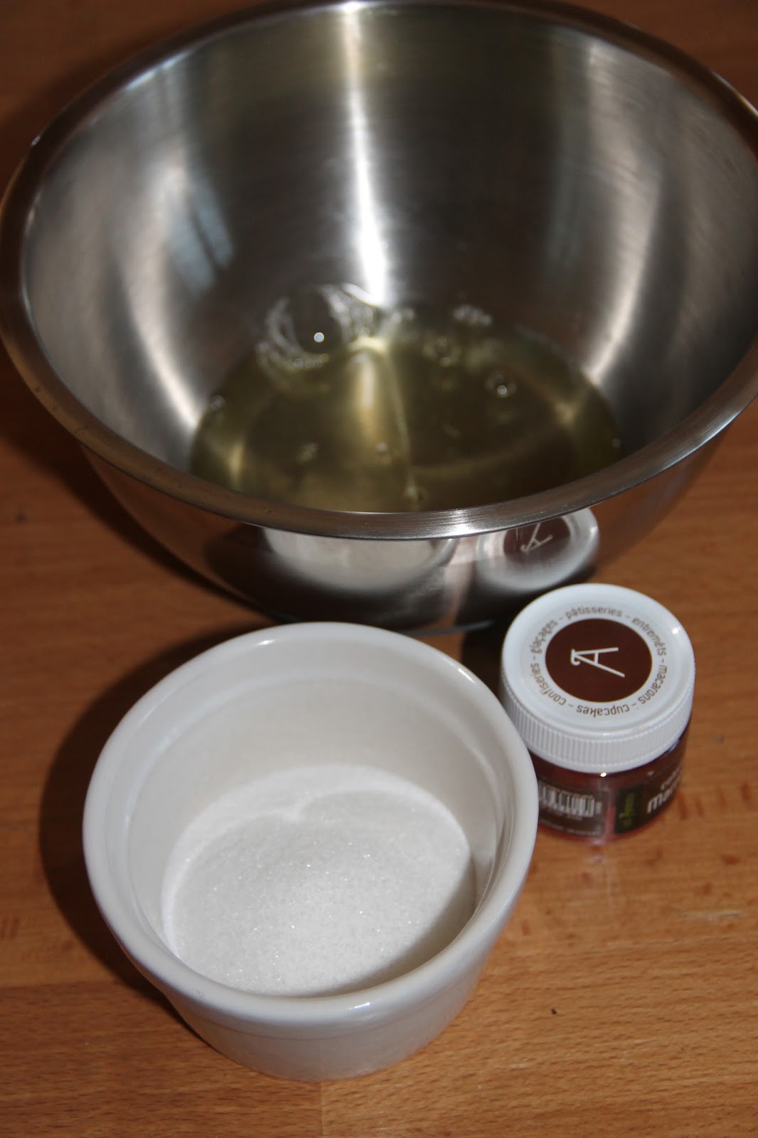 Mélanger les deux préparation intimement, jusqu’à obtenir une pâte brillante qui forme un ruban lorsque vous soulever votre maryse. Ajouter le colorant alimentaire.