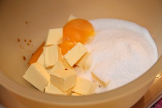 Mettre le beurre, le sucre, le sel, la vanille et les jaunes d’oeuf dans un cul de poule et bien mélanger.