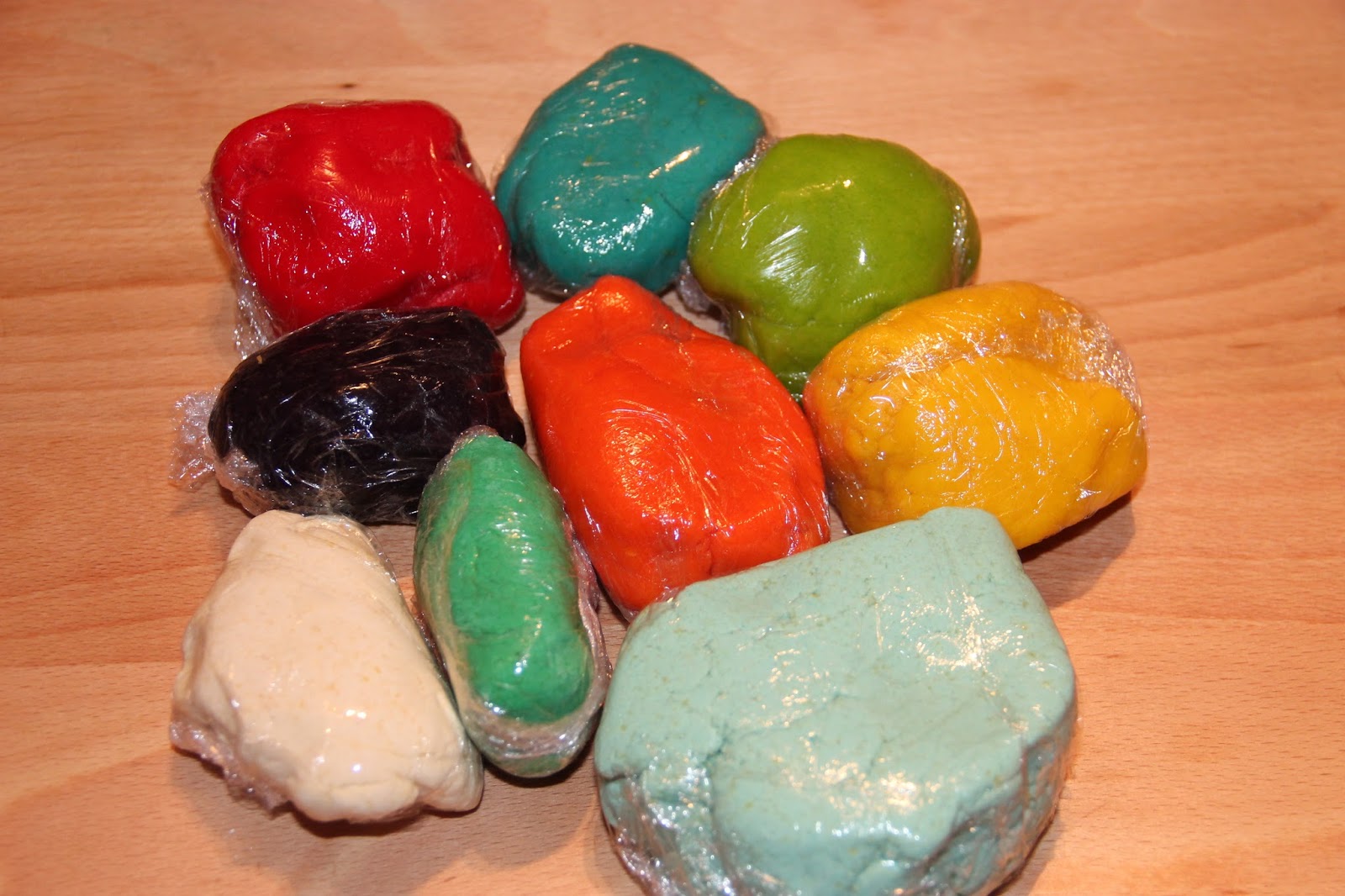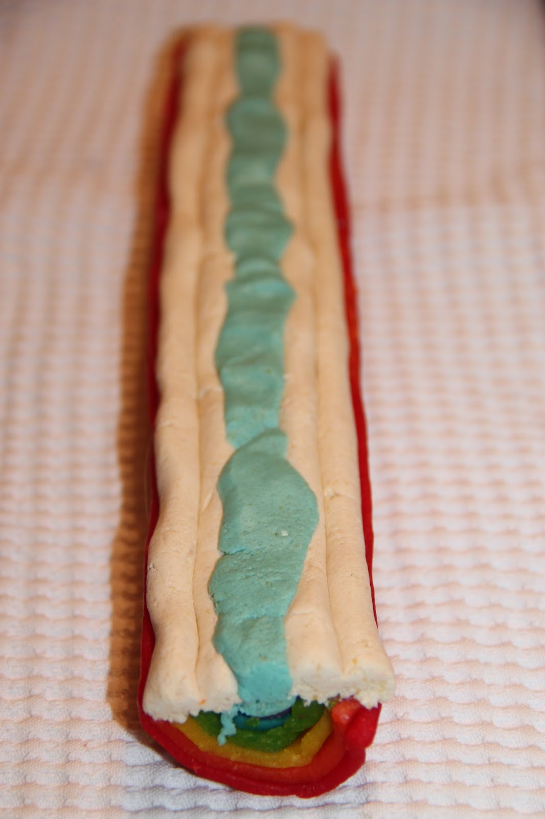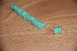 Séparer la pâte en 8, dont un pâton (le turquoise), sera trois fois plus gros que les autres.