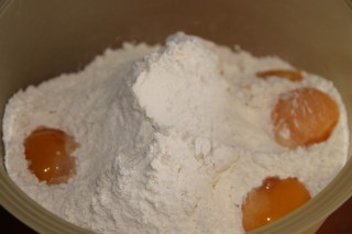 Mélanger 1 blanc d’oeuf avec 1 cs d’eau.