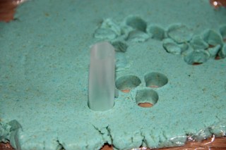 Assembler les demis cylindres bout-à-bout en les collant avec le mélange blanc d’oeuf eau.