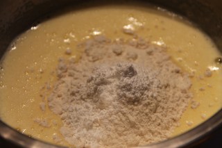 Ajouter progressivement la farine additionnée de levure.