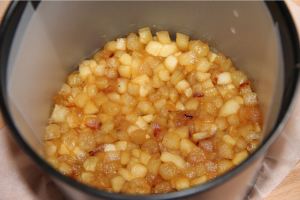 Entremet mousse Dulcey, mousse pomme, pommes confites et biscuit noisette