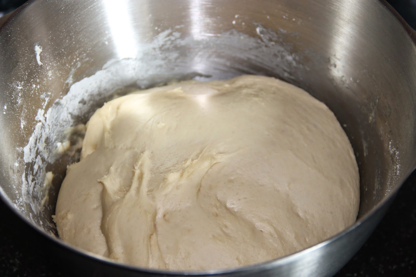 Dans la cuve du robot, mettre la farine, le sucre, l’oeuf, l’eau de fleur d’oranger, le beurre fondu, le lait additionné de levure, et pétrir 8 min au crochet afin d’obtenir une pâte bien lisse.