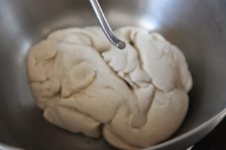 Pétrir ensuite au crochet pendant 10 mn jusqu’à ce que la pâte soit douce sous la main.